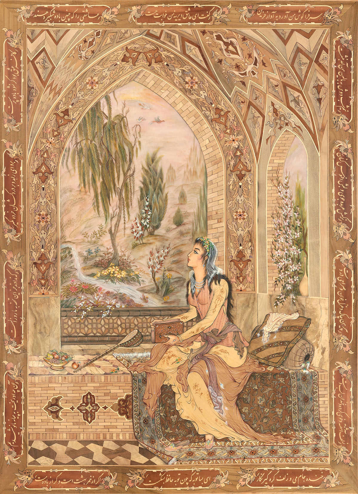 With over 50 years of experience, Javad Pouzesh is a master craftsman in the art of wood inlay (marquetry) and Persian miniature painting. His work, renowned for its complexity and attention to detail, stands among the finest and most sought-after in this artistic tradition.